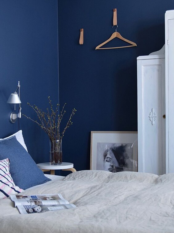 Le charme de la peinture bleue réside dans sa polyvalence – qu’il s’agisse d’un bleu gris pâle et délicat, d’un bleu canard ou encore d’un bleu nuit profond, la peinture bleue donne vie aux murs. Selon la teinte de bleu choisie, elle peut apaiser et agrandir visuellement l’espace, ou rendre la pièce cosy et avenante