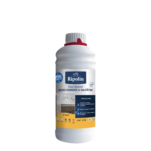 • Dans le cas d’une humidité due à une infiltration par contre-pression ou dans une pièce enterrée / semi-enterrée, utiliser RIPOLIN PEINTURE CAVE & SOUS-SOL