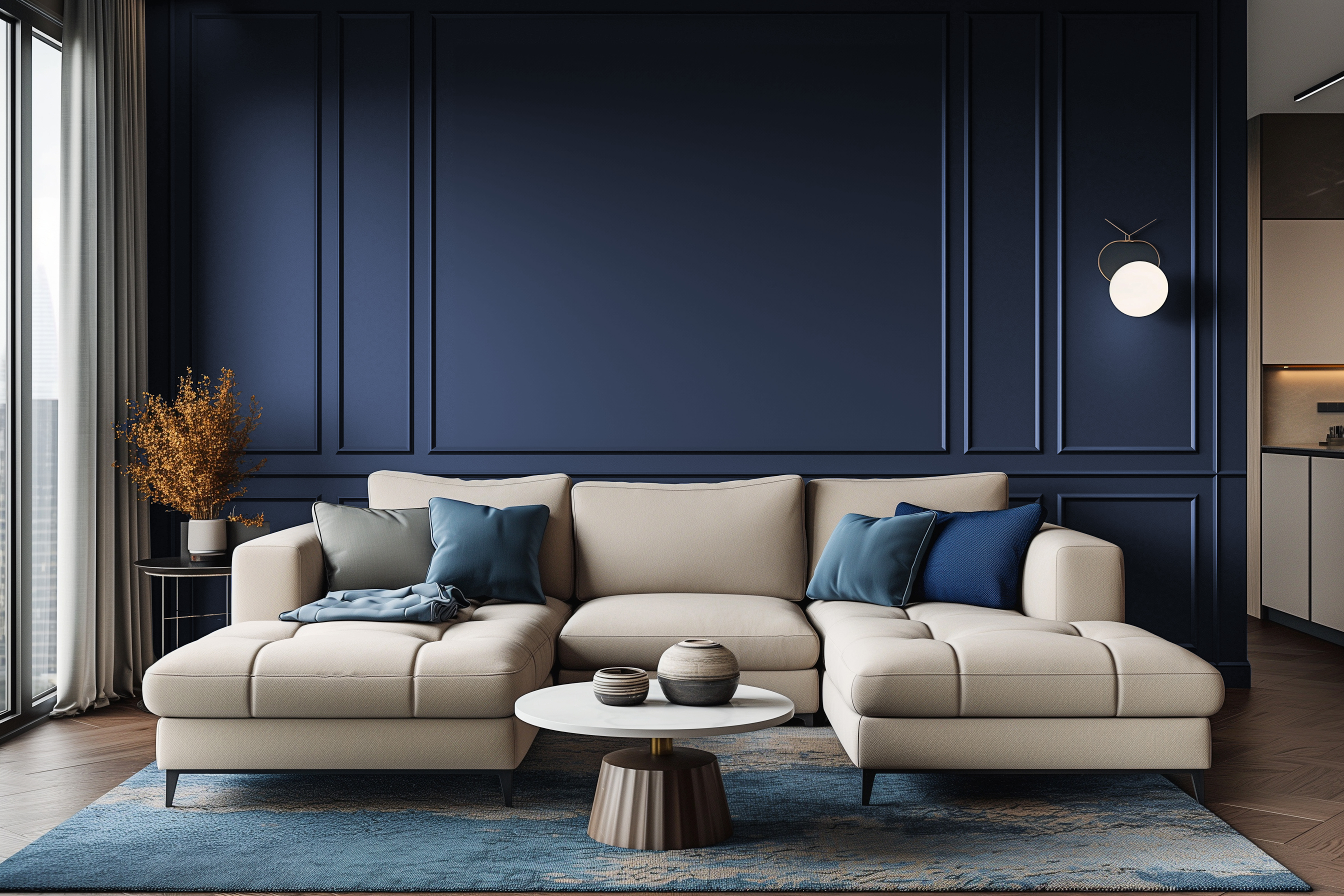 Bleu foncé, ambiance moderne